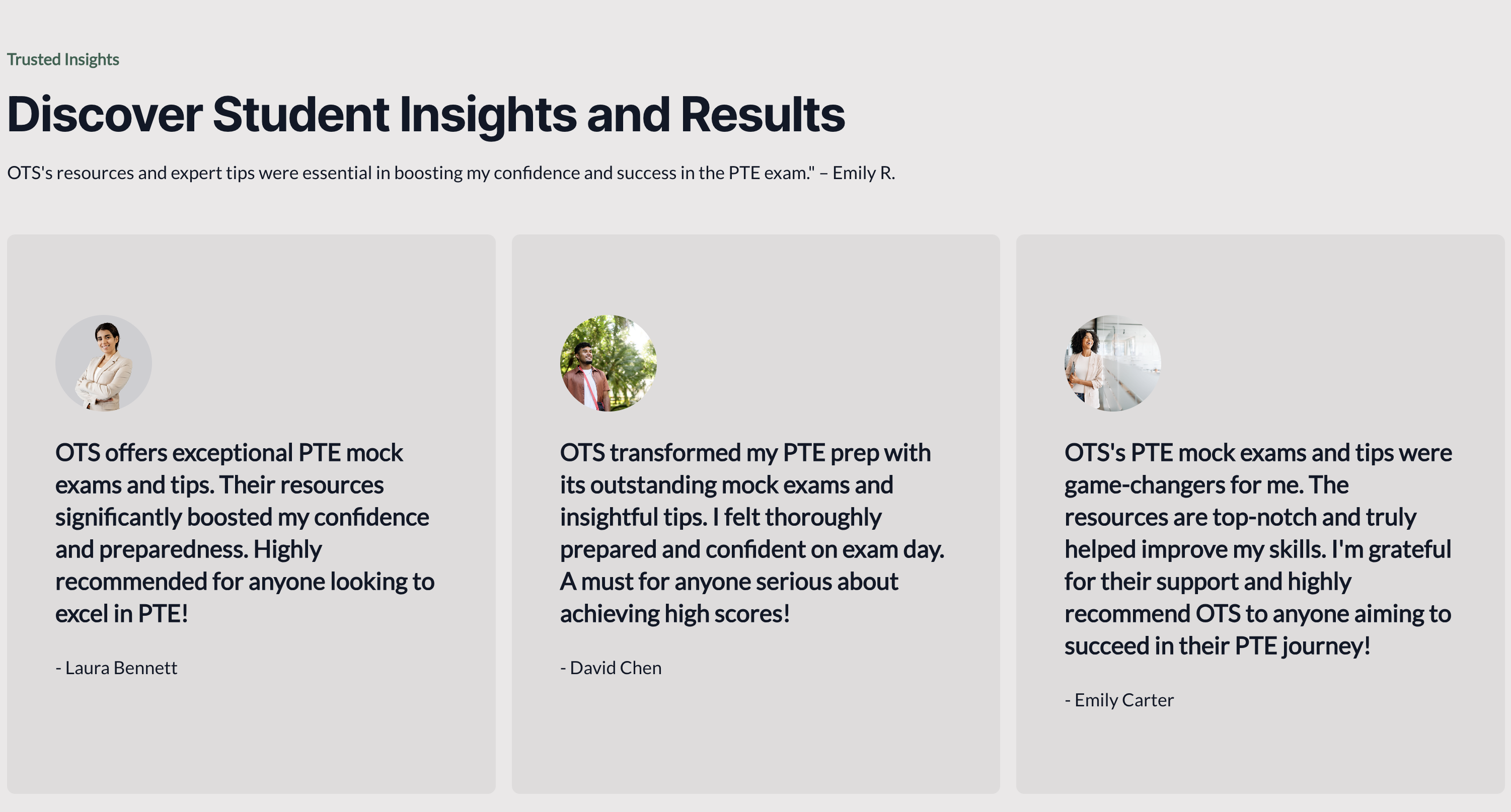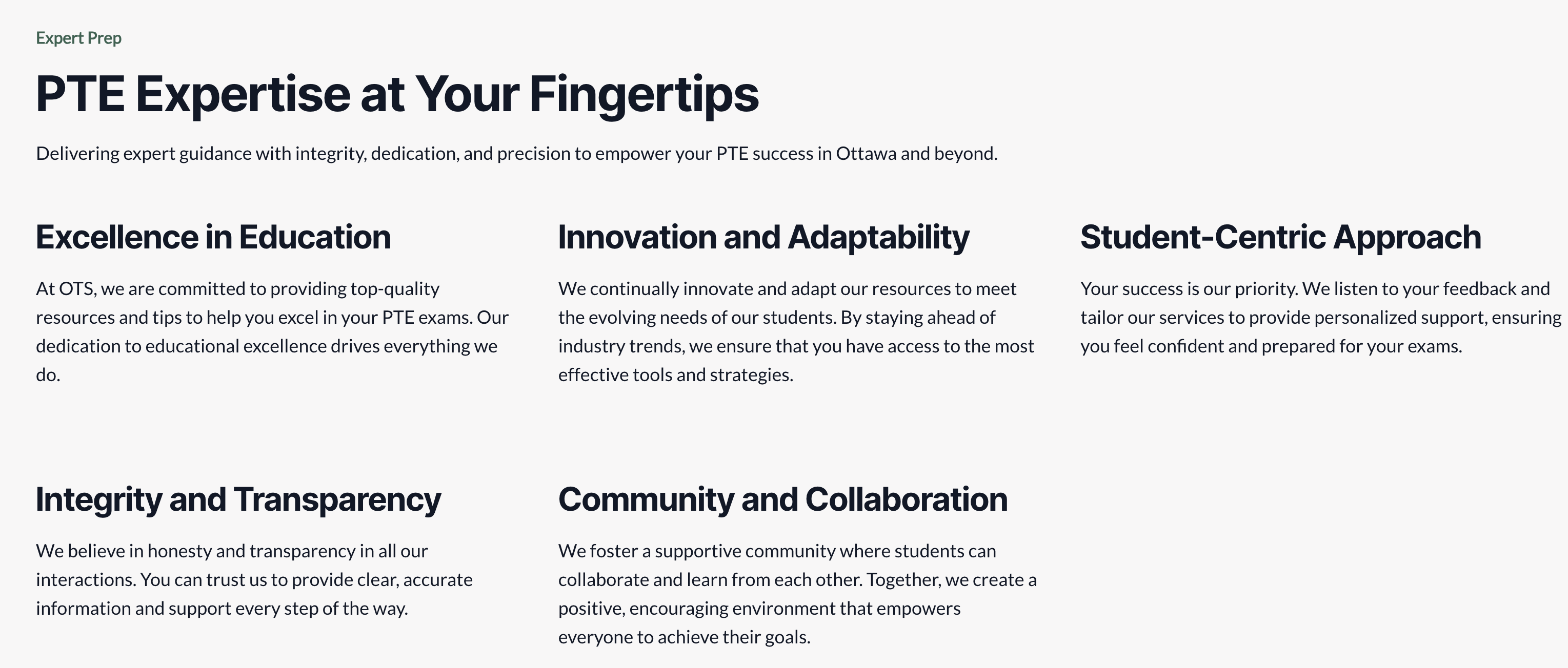 At OTS, based in Ottawa, Ontario, we specialize in providing top-notch online PTE mock exams. Our mission is to empower students with the tools and confidence they need to excel in their PTE exams. With expertly crafted practice tests that mirror the actual exam format, we ensure you are well-prepared to achieve your best score. Join us at OTS and take the first step towards your success!